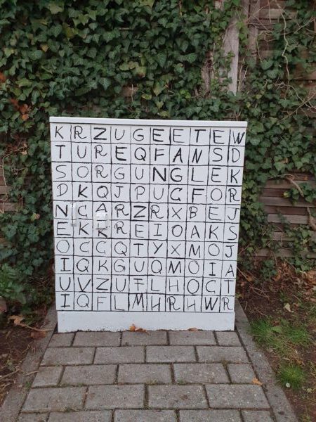 Das schwarz-weiße Gitterrätsel auf dem Stromkasten am Hansaring versteckt einige Begriffe aus dem Energiebereich. Wer also bei einem Sonntagsspaziergang mit seiner Familie eine kleine Rätseleinheit einbauen möchte, der schaut sich den Stromkasten am Hansaring ganz genau von vorne und den beiden Seiten links und rechts an. Drei oder mehr Begriffe sind dort erst auf den zweiten und dritten Blick zu erkennen. Die Schüler haben an alles gedacht, sogar an die Lösungen, die etwas verdeckt zu finden sind.