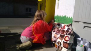 Bildunterschrift: Völlig vertieft: Die Kinder der Kita St. Stephanus haben sich beim Bemalen des Stromkastens an der Clemens-August-Straße viel Mühe gegeben.