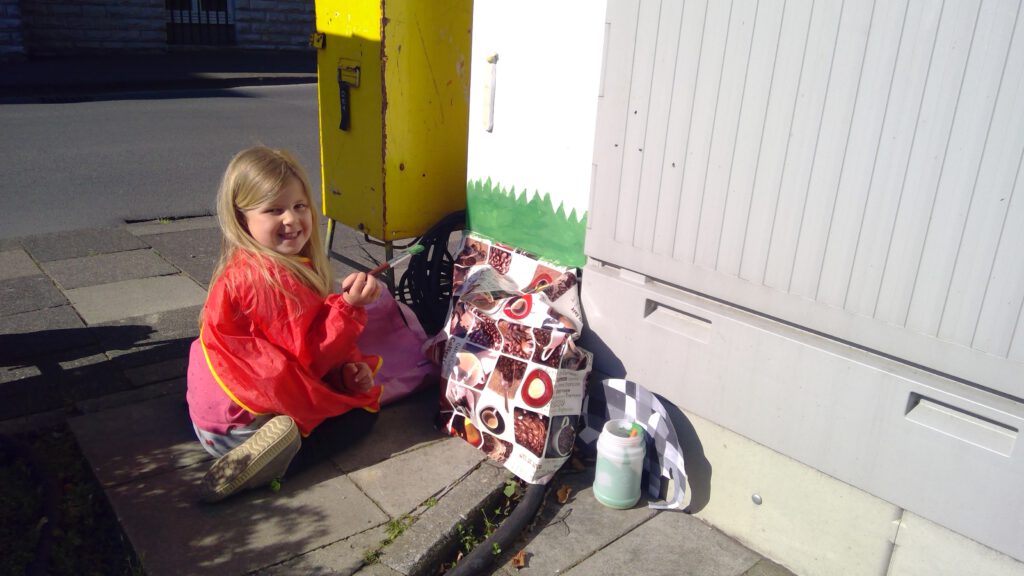 Wichtig ist, dass bei der Malaktion mindestens eine erwachsene Person dabei ist. Im Falle der Kita St. Stephanus waren das die Erzieherinnen Petra Stake-Kruse und Julia Buschhoff. Das Motiv vom Elefanten Elmar haben sie zusammen mit den Kindern bewusst ausgesucht. Es stammt aus der Buchreihe des britischen Kinderbuchautors David McKee. „Elmar ist der einzig bunte Elefant in der Herde. Er steht für eine bunte Gesellschaft und vermittelt Kindern die Aussage: Du bist richtig, wie du bist, auch wenn du nicht aussiehst wie alle anderen“, sagt Petra Stake-Kruse. Julia Buschhoff ergänzt: „Die Kinder waren total motiviert, für sie war es etwas Besonderes, einen Stromkasten zu bemalen, und sie haben es stolz ihren Familien erzählt“.