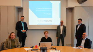 Bildunterschrift: Bei der 1. Aufsichtssitzung verabschiedeten Irena Struwe-Filipaja, Stadtwerke Arnsberg – André Dreißen, Geschäftsführer Stadtwerke Soest – Barbara Beutler, Stadtwerke Soest – Ulrich K. Butterschlot, Geschäftsführer der Stadtwerke Arnsberg – Kai Grimm, Energieversorgung Beckum und Dr. Daniel Dierich, Geschäftsführer der Energieversorgung Beckum den Wirtschaftsplan und starteten damit das operative Geschäft der Servicewerke Westfalen.