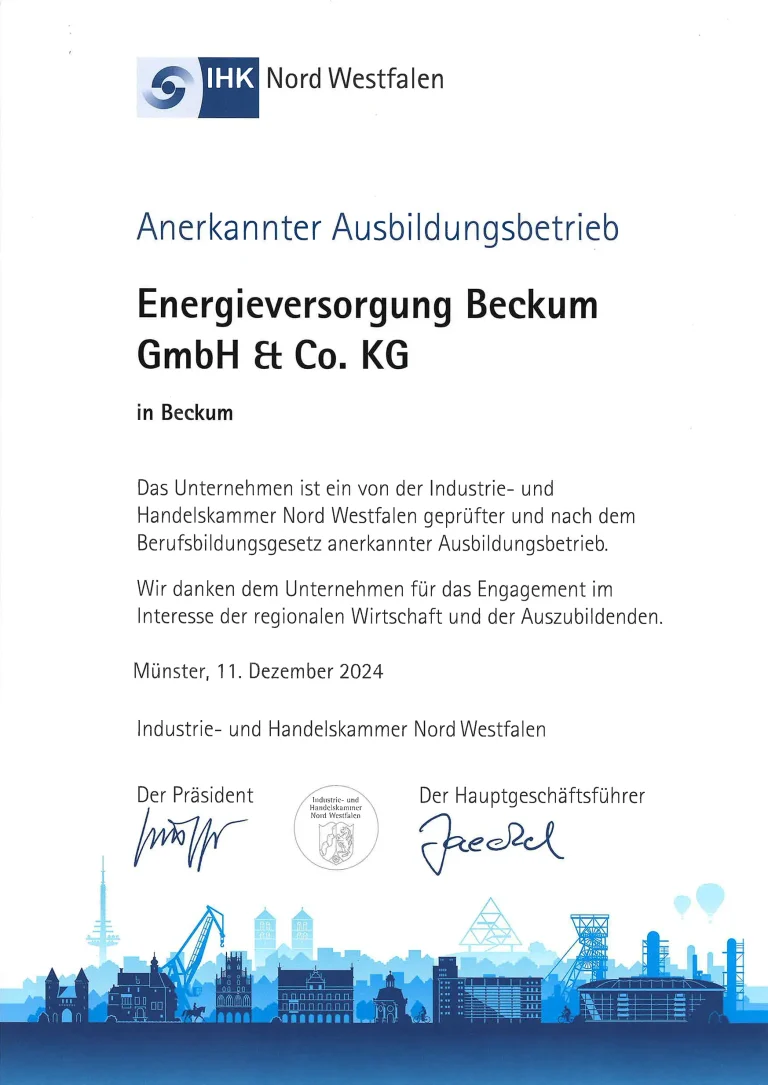 Als professioneller Energiedienstleister vor Ort stärken wir den Wirtschaftsstandort Beckum. Wir tragen dazu bei, die Lebensqualität in unserer Stadt und in der Region zu erhöhen. Werden auch Sie Teil eines sympathischen, qualifizierten und engagierten Teams.